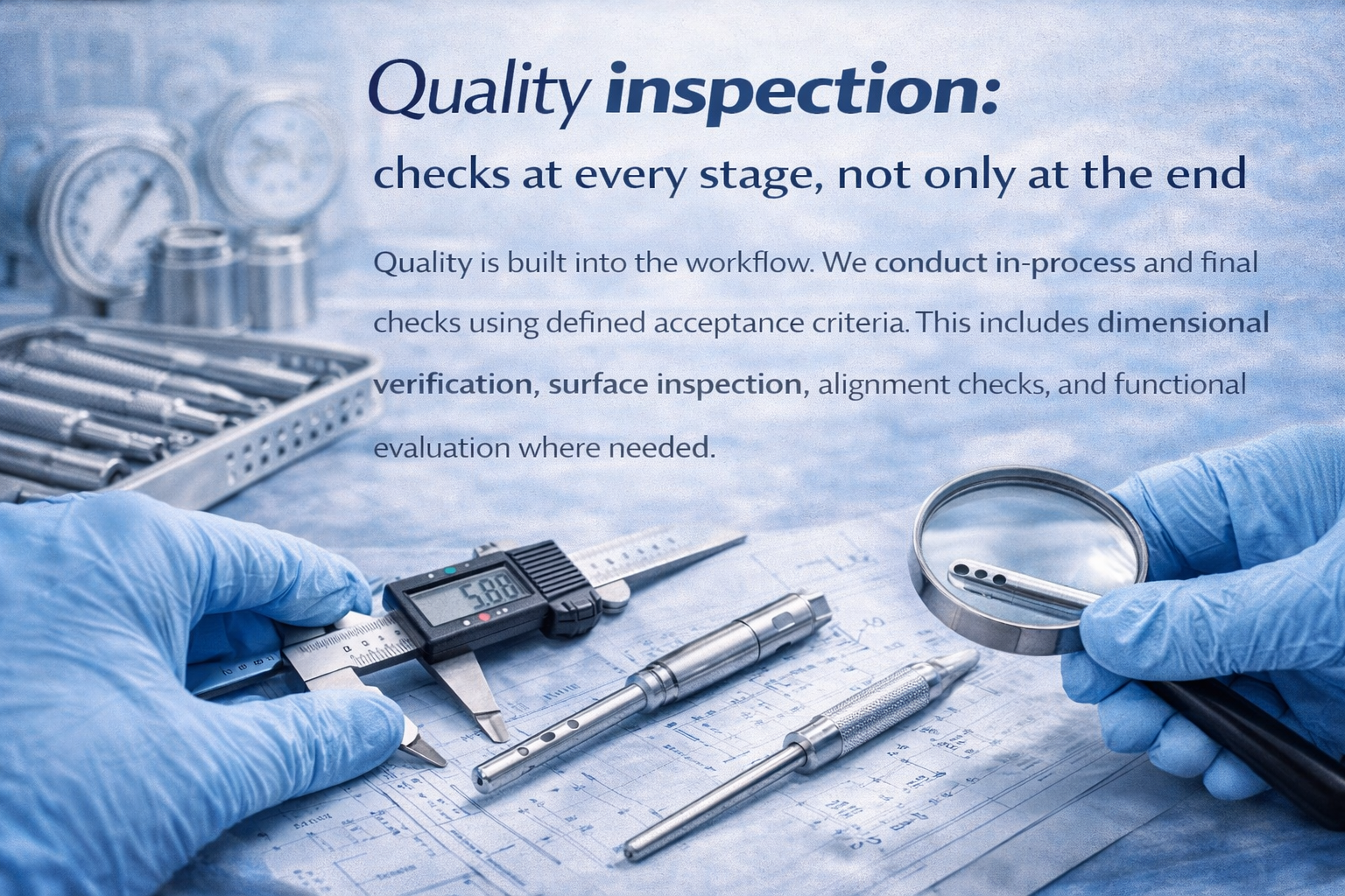 Quality is built into the workflow. We conduct in-process and final checks using defined acceptance criteria. This includes dimensional verification, surface inspection, alignment checks, and functional evaluation where needed. Sampling and batch-level verification reduce variation and help maintain consistent results over repeat orders.